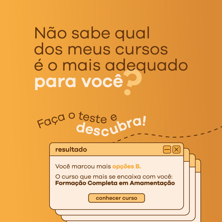 Compartilho conteúdos diversos nas minhas redes, focadas em ajudar famílias e/ou profissionais que desejam se capacitar na área de assistência à amamentação.
